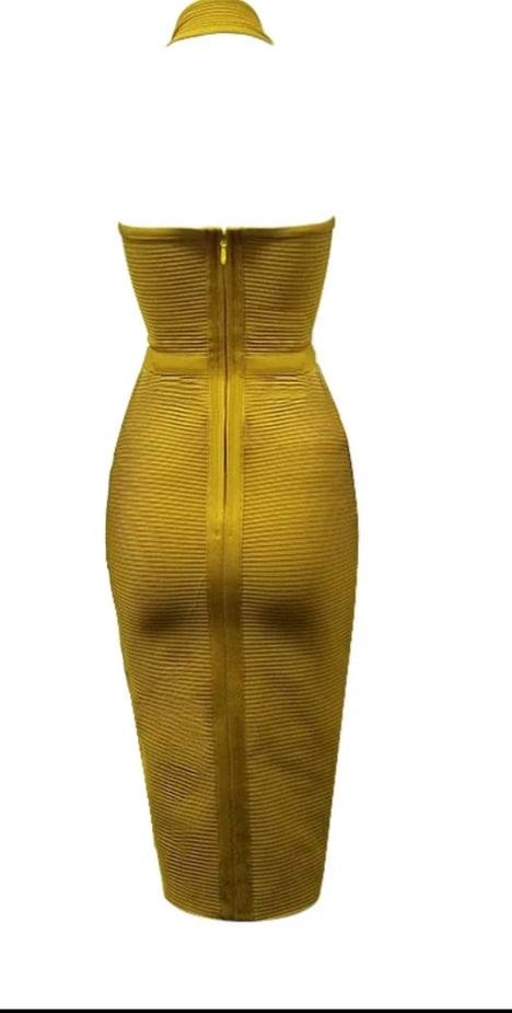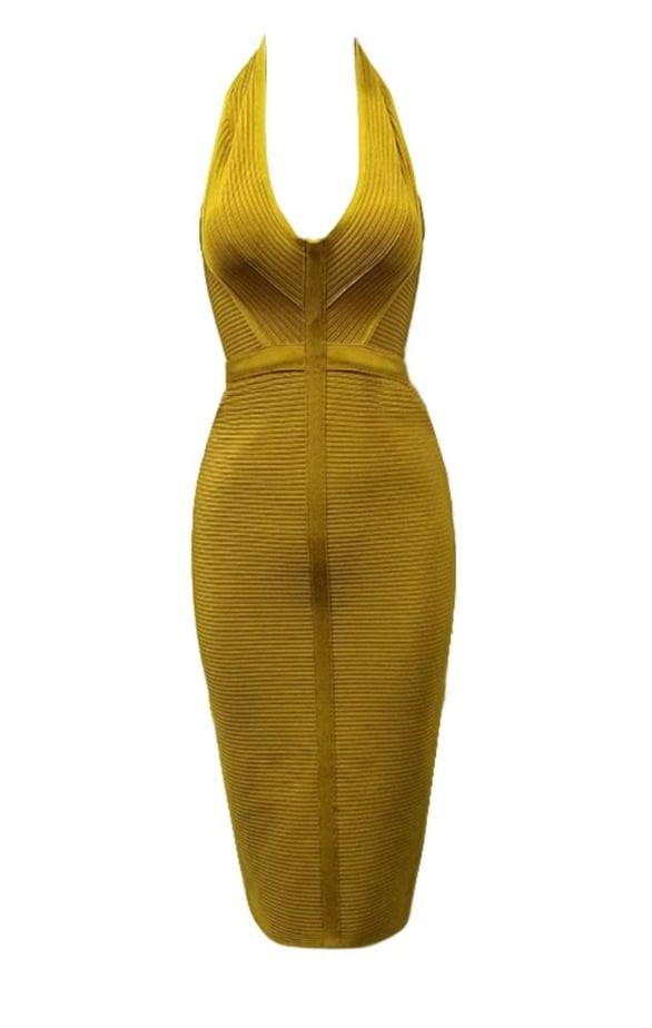 Robe Bandage Moulante Sexy Halter V Profond Sans Manches Dos Nu